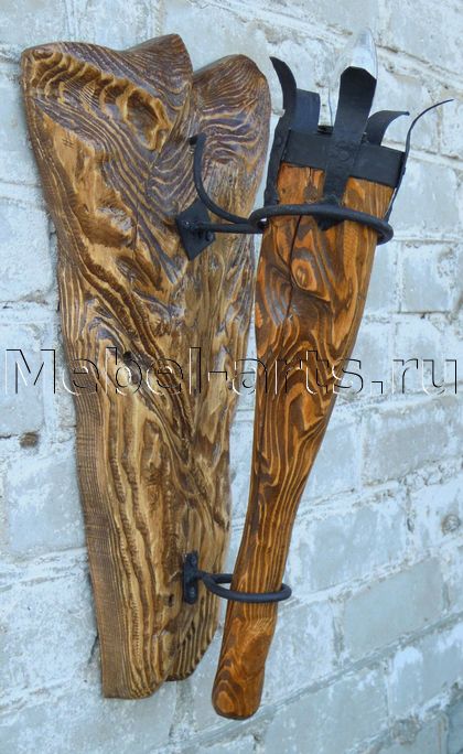 Светильник из массива сосны с коваными элементами.