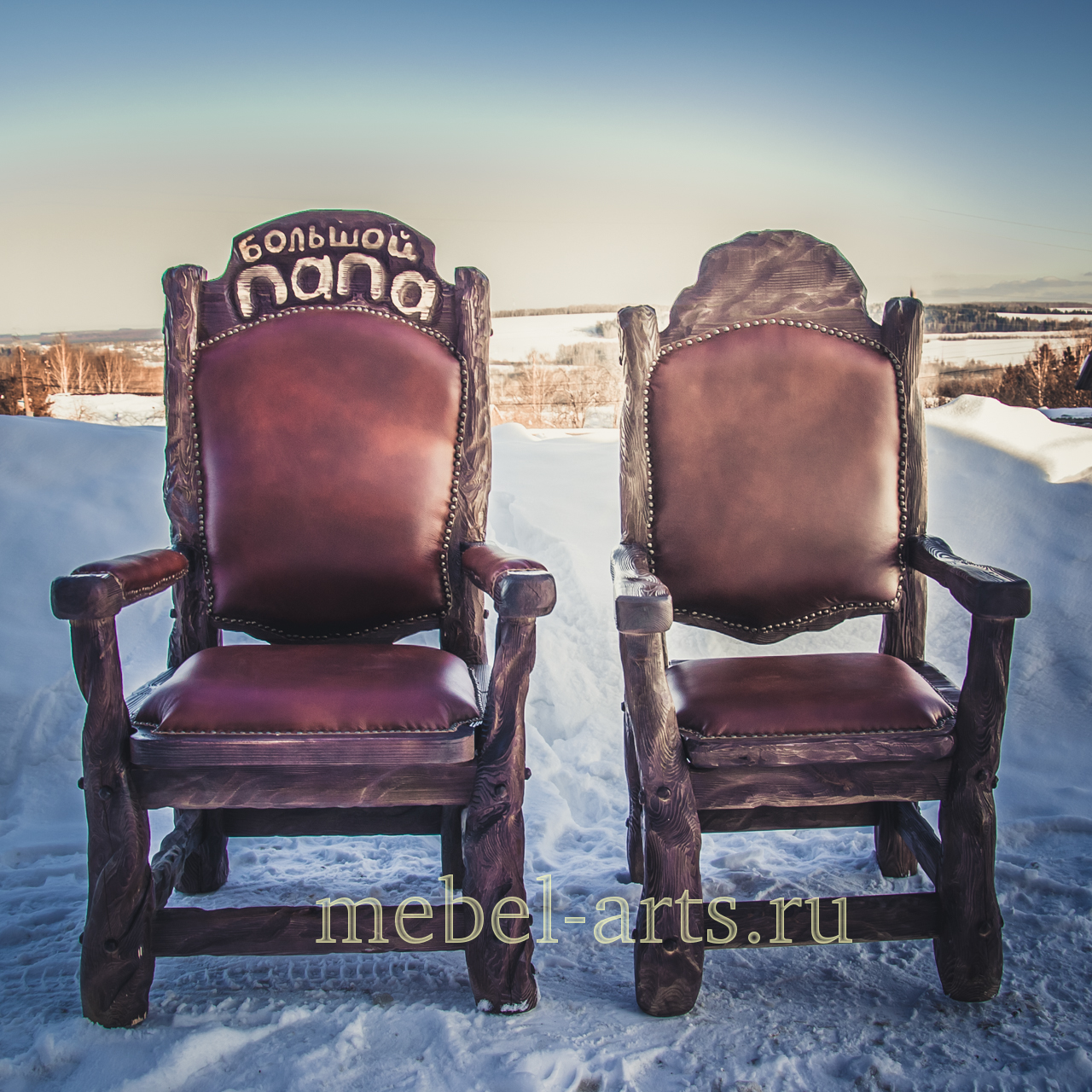 Кресло с кожаной обивкой и надписью