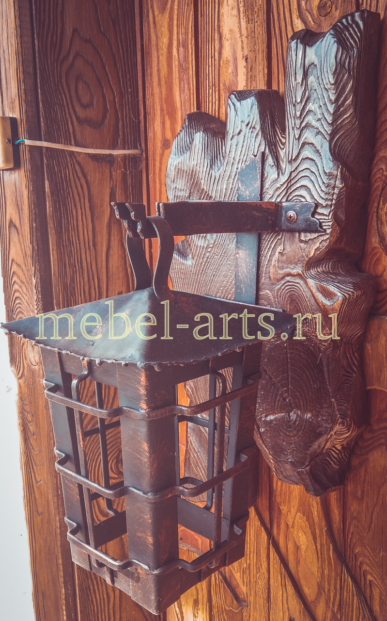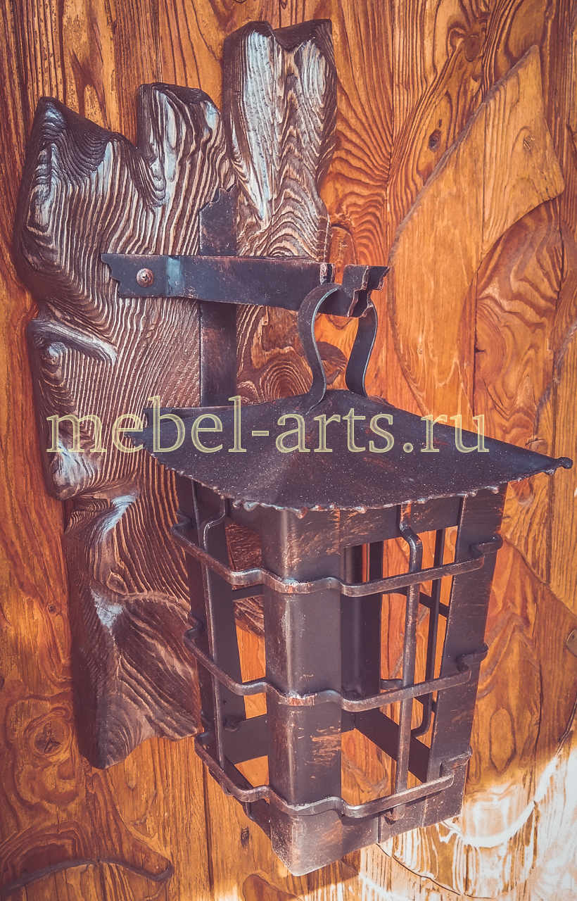 Светильник настенный металл на деревянной основеПосмотрите в разделе Деревянные светильники под старину все изделия.